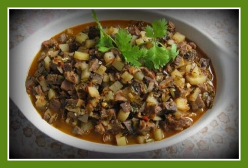 Característico del oriente de nuestro país, este plato se preparaba con sangre y menudencias dé cordero cocidas y picadas; en la actualidad lo preparamos con: