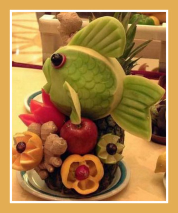 Garnish, Mukimono,Tallado. Pez de Sandia