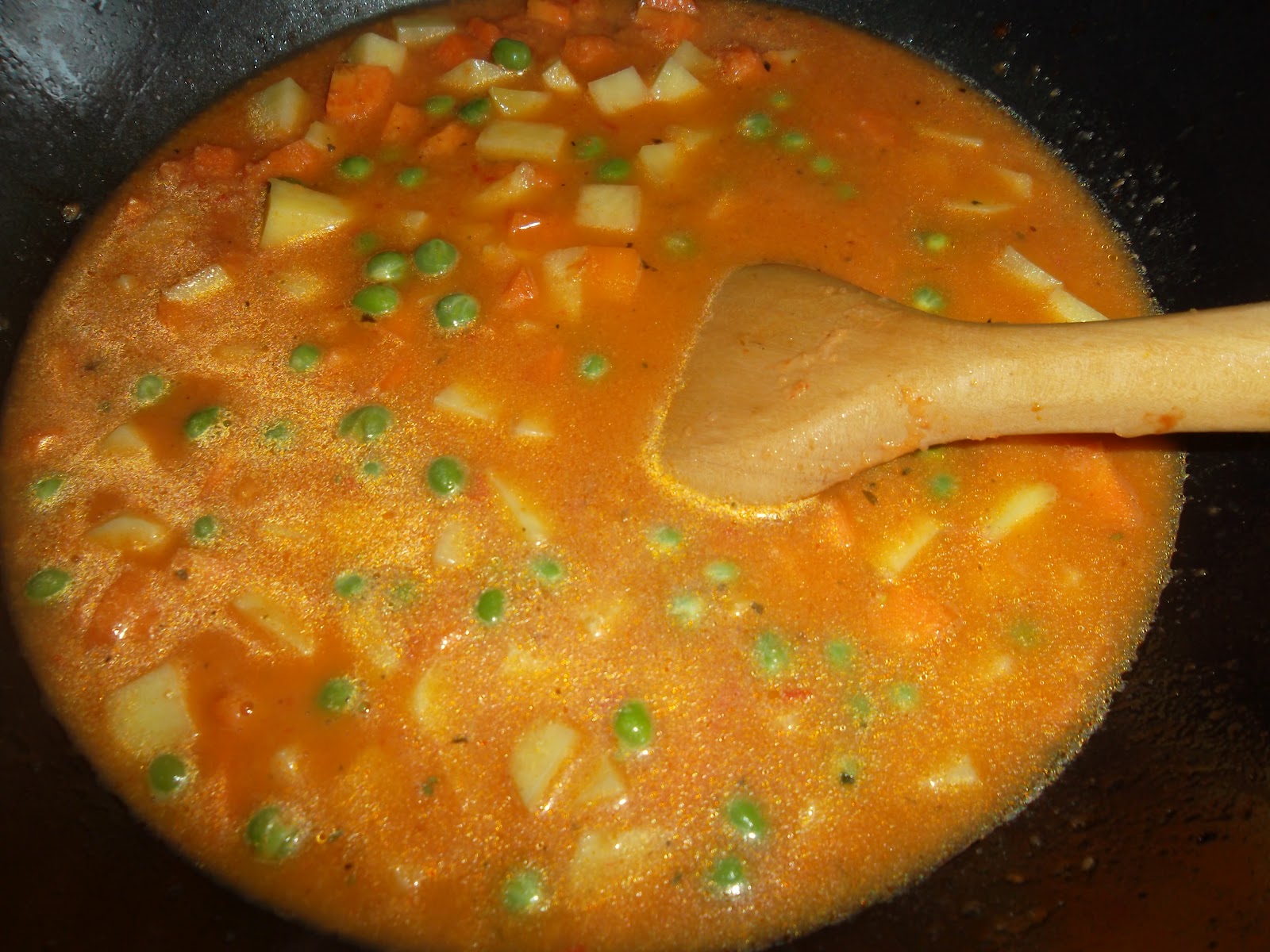Preparar un ahogado en aceite con cebolla, arvejas, ajo y el ají.