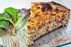Enharinar una molde para horno y armar el pastel colocando una capa de masa, mezcla de atún, rodajas de huevo duro, aceitunas picadas, otra capa de mezcla de atún y finalmente una capa de masa.