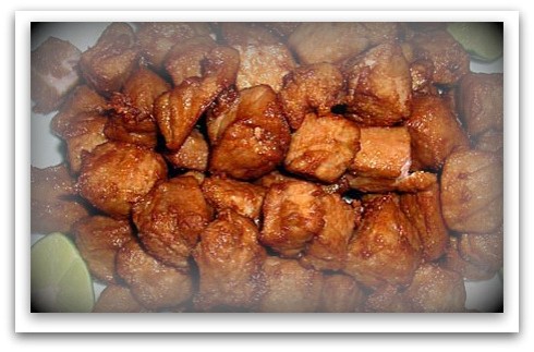 Corte en trozos de 5 cm. el surubí y lave bien y escurrir. Añadir la sal, el limón, la pimienta y el ajo y dejar reposar una hora.