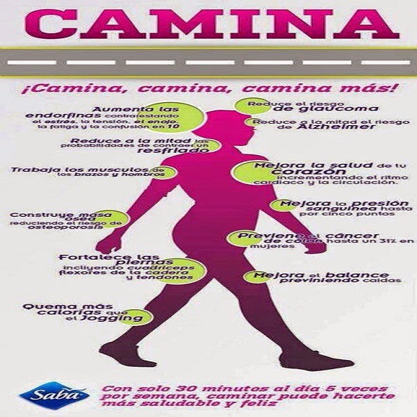 1) Caminar fortalece el corazón reduciendo las probabilidades de complicaciones cardiovasculares. Está demostrado que, por ejemplo, las enfermeras que caminan muchas horas a la semana poseen un 35% menos de complicaciones cardíacas que otras mujeres sedentarias de su misma edad.