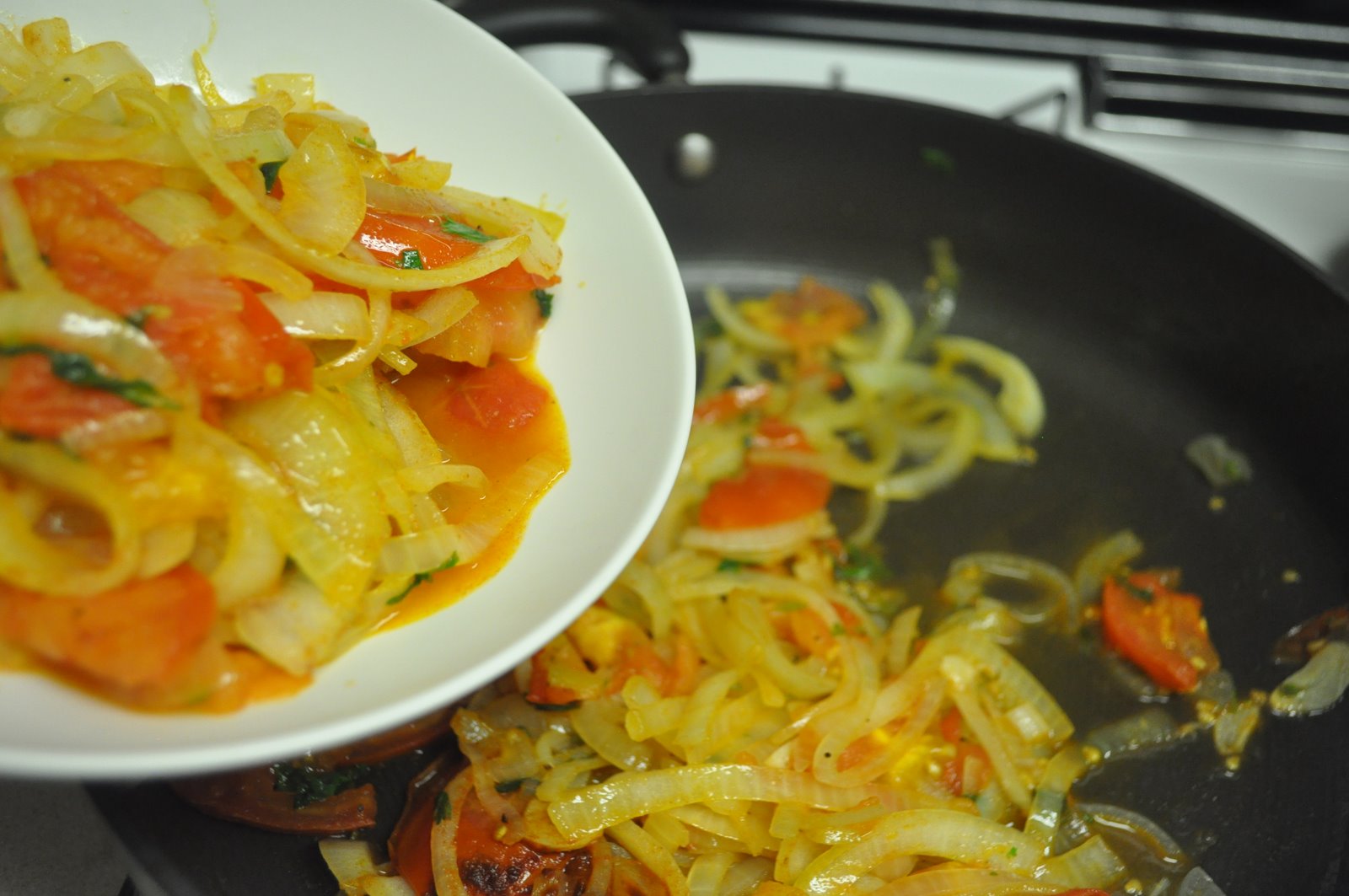 Lavar, pelar y cortar la cebolla entera horizontalmente.