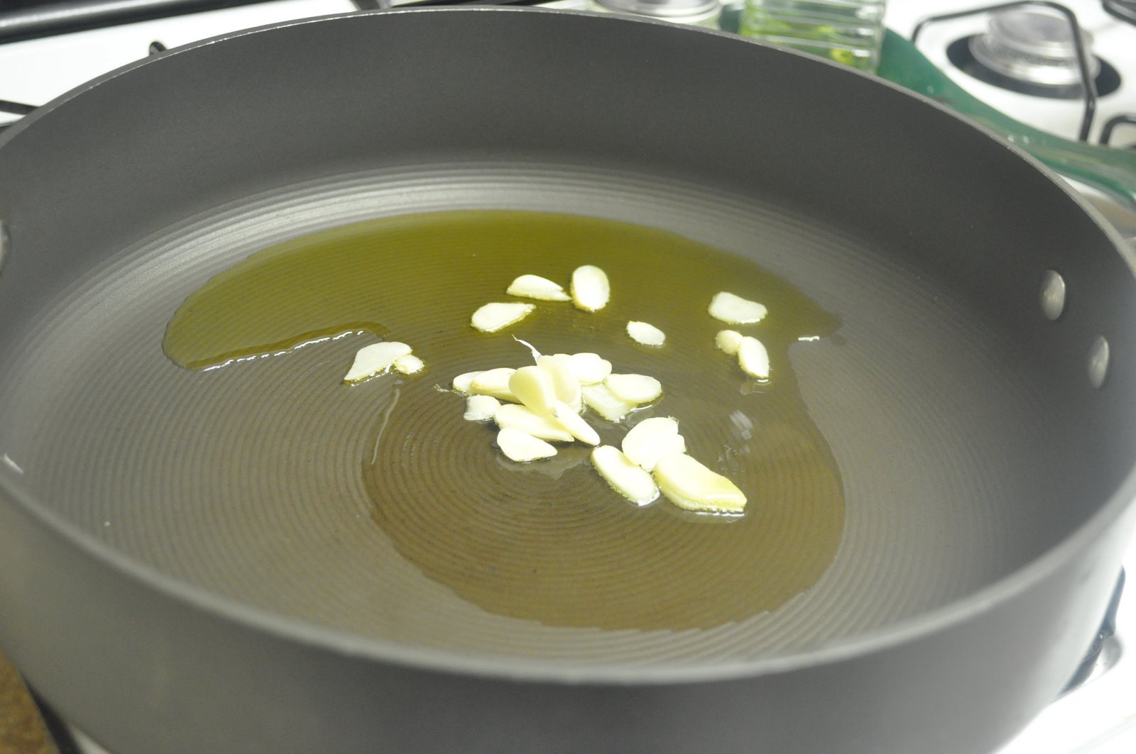 Pelar 2 a 3 dientes de ajo fresco y ligeramente aplastarlos con un lado de un cuchillo ancho.