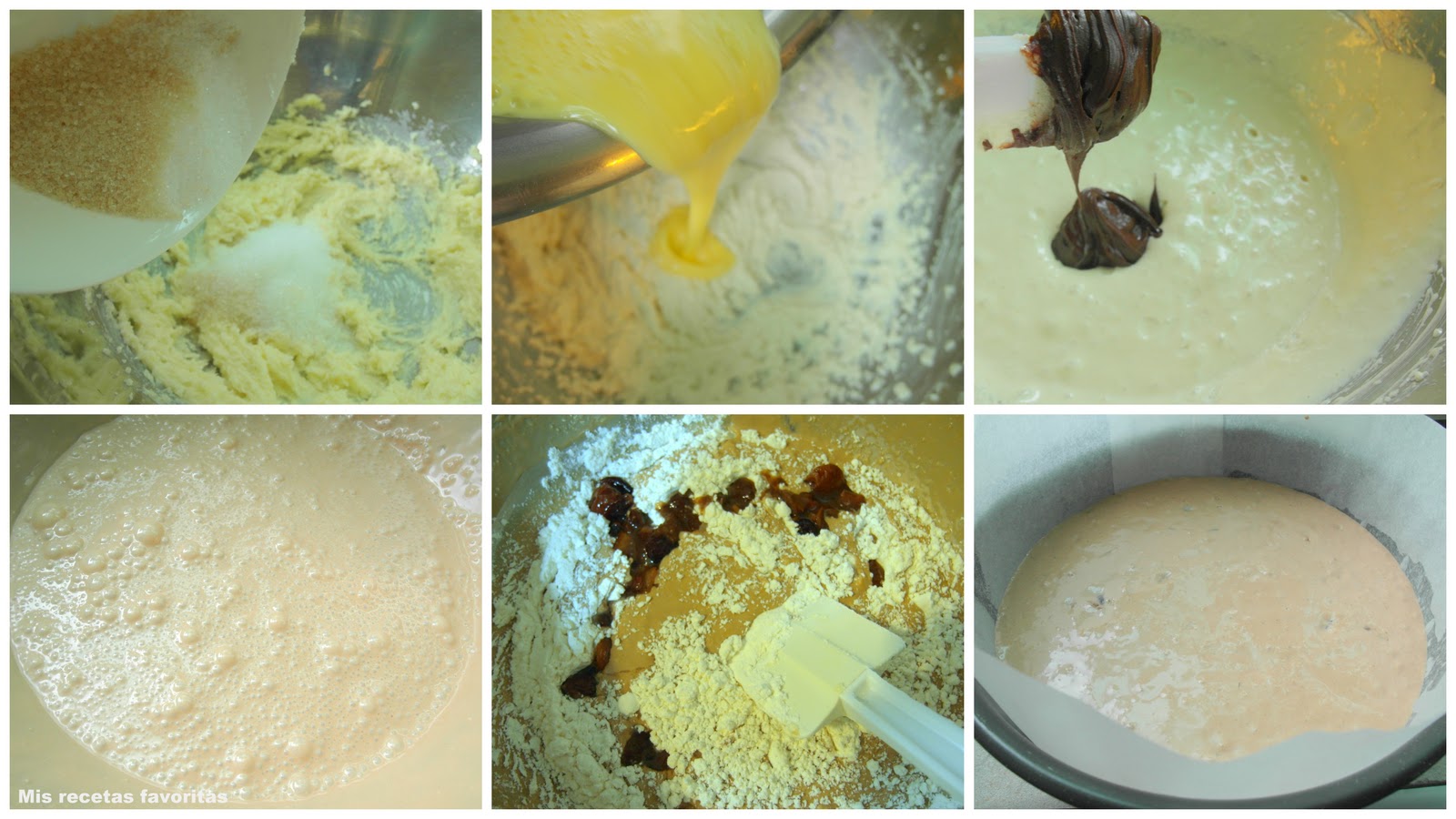7. Por último, sin batir, con movimientos envolventes, se agregan alternadamente, por partes, la harina cernida con el polvo de hornear y la maceración de frutas, terminando con la harina. Se mezcla bien y se vierte en el molde.