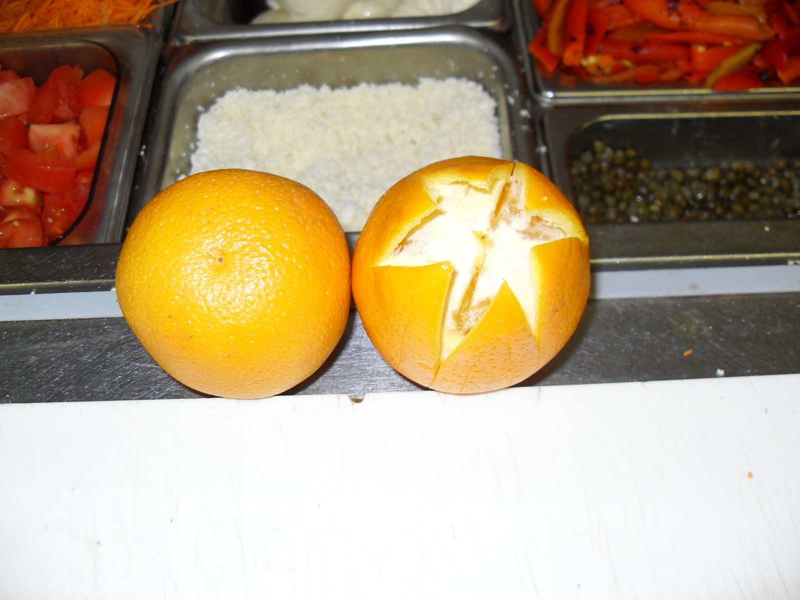 Para empezar el Mes De Diciembre, les doy un tip para que puedan deleitar a sus familiares, amigos, etc…, en una bandeja de presentación, queda de 10, es fácil y sencilla de hacer lo único que se necesita son algunas naranjas, para ir practicando, hasta el momento de la verdad(ja, ja…)no es cierto I’m Joking(estoy bromeando), si hacen como esta en la fotografía, no van a desperdiciar nada, saquen un picture y envíen a mi correo y la ponemos junto a la mía que les parece…