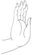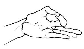 La mano derecha debe tener el pulgar y el índice unidos. Además la palma de la mano debe estar orientada hacia el exterior, señalando así el mundo que nos rodea.