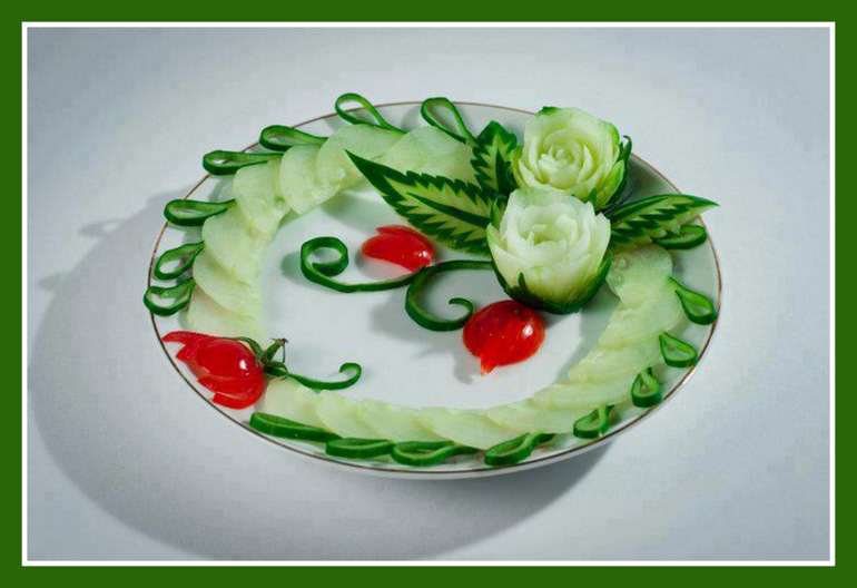 Garnish, Mukimono, Tallado. Rosas de Pepinos