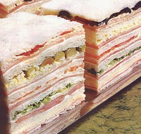 Pan blanco, mezclar cuatro cucharadas de mayonesa light, 1 lata de atún, 2 caballas de lata, 4 alcachofas de lata picadas en cuatro trozos, 1 huevo cocido picado, un puñado de guisantes y 1/2 lata de pimientos morrones picados. Revolver todo y untar en pan de molde, tipo “Tramezzini”
