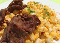 De la carne de res, se cortan asados no muy delgados y se los asa en manteca bien caliente.