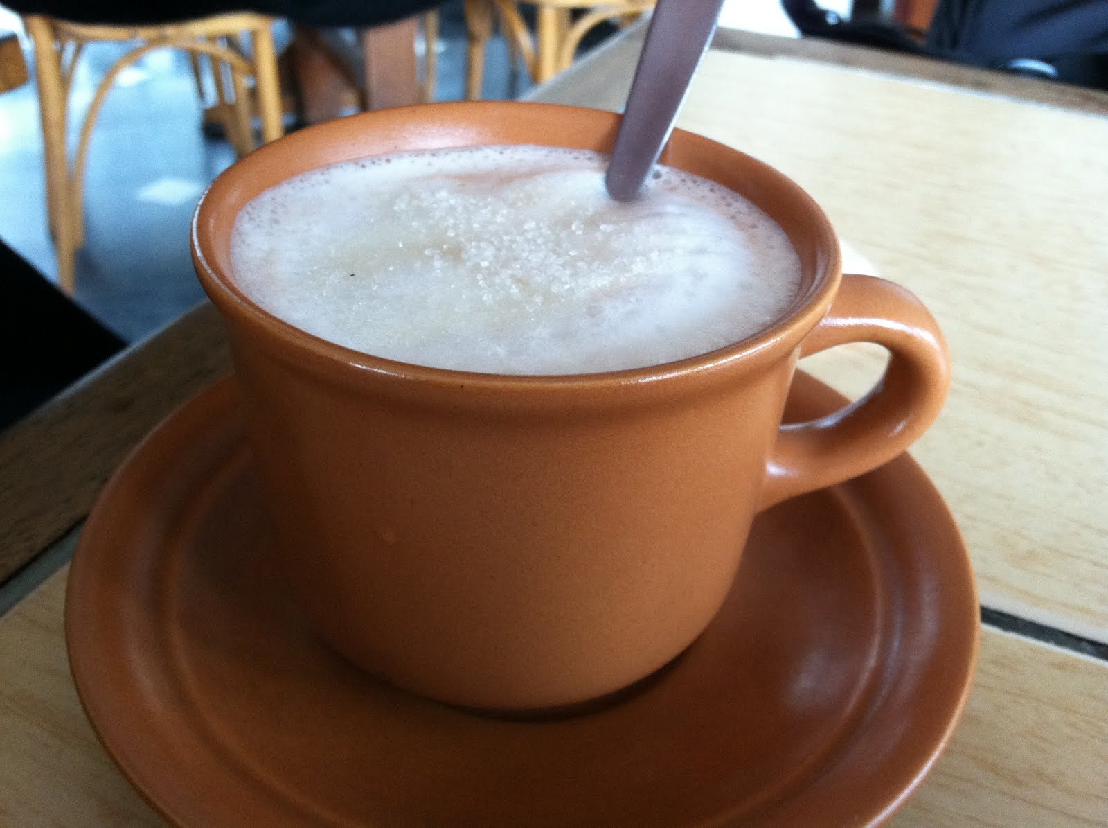 We order a cup of coffee and hot chocolate to stave off the freezing cold. Whoever thinks South America is a tropical paradise has never come here during the winter (summer for the U.S. is winter in South America, and vice versa).