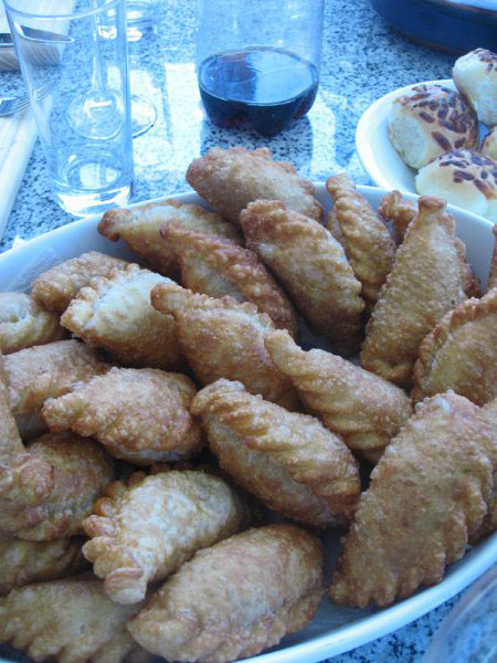 Relleno: hervir las espinacas o acelgas, exprimirlas hasta quitarles toda el agua. Freír una cebolla finamente picada, agregarles dos huevos enteros la miga de un pancito mojado en leche, queso rallado, un huevo duro cortado en rodajas y aceitunas descarozadas. Condimentar con sal y pimienta.
