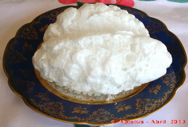 Dos cucharas de almíbar se ponen al cucharón y hay que hacerla hervir en el mismo cucharón hasta que tome punto. Cuando al hervir se forma una natita ligera sobre los globos que hace la ebullición; entonces con un palito se saca un poquito de clara batida y se menea con el mismo palito a un solo lado y dentro del mismo cuchararón;cuando el batido está espumoso y por levantarse, se vacía sobre un papel con azúcar granulada. Y está hecho un panal, y así se continua hasta terminar el almíbar y la clara batida.