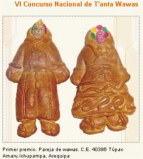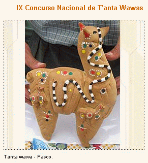 Una de las tradiciones de Día de difuntos que queda más grabada en los recuerdos de infancia es la de las «tantawawas», que en lengua quechua quiere decir «niño de pan» (tanta=pan, niño=wawa). En Ayacucho, Huancavelica, Apurímac o Cusco, se hacen de las más diversas formas y son de un delicioso bizcocho compacto, muchas veces con menudas y polícromas grageas y pasas. Más al sur suelen hacerse de bizcocho más ligero, de varios tamaños y con caretas de yeso; en Arequipa donde suelen llamarse simplemente «wawas» (o «guaguas»), los niños acostumbrábamos coleccionar estas caretitas de distintos tamaños y caracterizaciones. Habían también wawas de bizcochuelo con cubierta glacé y su fina caretita, que eran apadrinadas en «solemnes» ceremonias entre amigos y/o familiares. La creatividad popular deja ver en cada zona tantas formas, texturas y sabores como primor en los detalles de su ornamentación surgiendo con frecuencia verdaderas obras de arte.