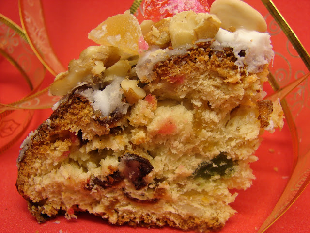 6. Retirar, dejar enfriar y decorar con glasé y algunas frutas abrillantadas.