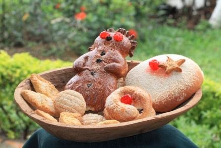 Masas de todo tipo, en especial galletas, maicillos, biscochuelos, empanadas, suspiros, yemas y panes en general, en formas de caballos, peces, escaleras y alas.