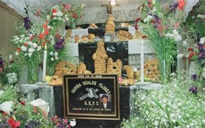 Cuentan que se empieza con un juego con piedras redondas y que según una vieja costumbre andina, se invita a todos los familiares y amigos a participar de ese juego; que se visita alguna casa y que allí todos comen algún plato tradicional. Hay muchos, pero generalmente se impone aquel que fuera del gusto del alma homenajeada (ver recetas tradicionales). Tras el almuerzo se empieza con el armado de una supuesta tumba, también conocida como altar o mesa. En ella se colocan una serie de símbolos hechos de pan y en esa simbología es fácil encontrar un sol, una luna, la cruz, una escalera, etc, etc. También se utilizan flores, frutos en flor, cañas, juguetes, escaleras o voladores sujetados a hilos (por donde las almas desciendan y asciendan al mundo de los vivos). No hay elemento sin significado, no se utiliza nada que no sirva para explicar el camino al mundo del más allá, aquel que está en el espacio. En el cielo.Según la tradición, en días previos a la fiesta, los mercados de las ciudades y del campo ofrecen ferias, en aimara se dice jacha ala ó althapi. En esas ferias hay abundancia de harina blanca y amarilla, de masitas y panes con figuras ántropo y zoomorfas junto a suspiros, alimento preparado en base a huevos de gallina y con todo ello, el tuquru, que es la parte floral de los arreglos. Las almas permanecen el el mundo de los vivos por 24 horas, ellas deben ser homenajeadas y para saber si se sienten cómodas también hay una herramienta ideada por la tradición: la vela encendida. Si el cebo comienza a chorrear es una mala señal, se dice que el alma está triste. En cambio si arde normalmente, el alma esta alegre y contagia su bienestar a sus deudos. A las doce horas del día 2, se apagan las velas para no retrasar su retorno al más allá, ya que, dicen, las puertas se cierran a esa hora. Las almas se van, los deudos quedan luego de haber combinado, por algunos días, como en todas las festividades pagano-religiosas, creencias nativas con la religión católica. Una simbiosis que data de la época colonial. |