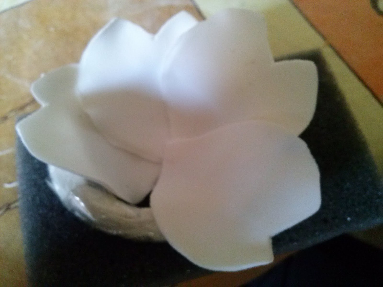 Aquí os dejo un mini tutorial de como he realizado esta flor que no se como denominar, puesto que es completamente inventada!!! Podría ser una mezcla de rosa silvestre y anemona sencilla, no se, a mi me gusta, y espero que ha vosotr@s también!