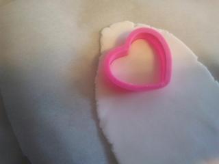 Una vez que tenemos la masa estirada, cortamos los corazones