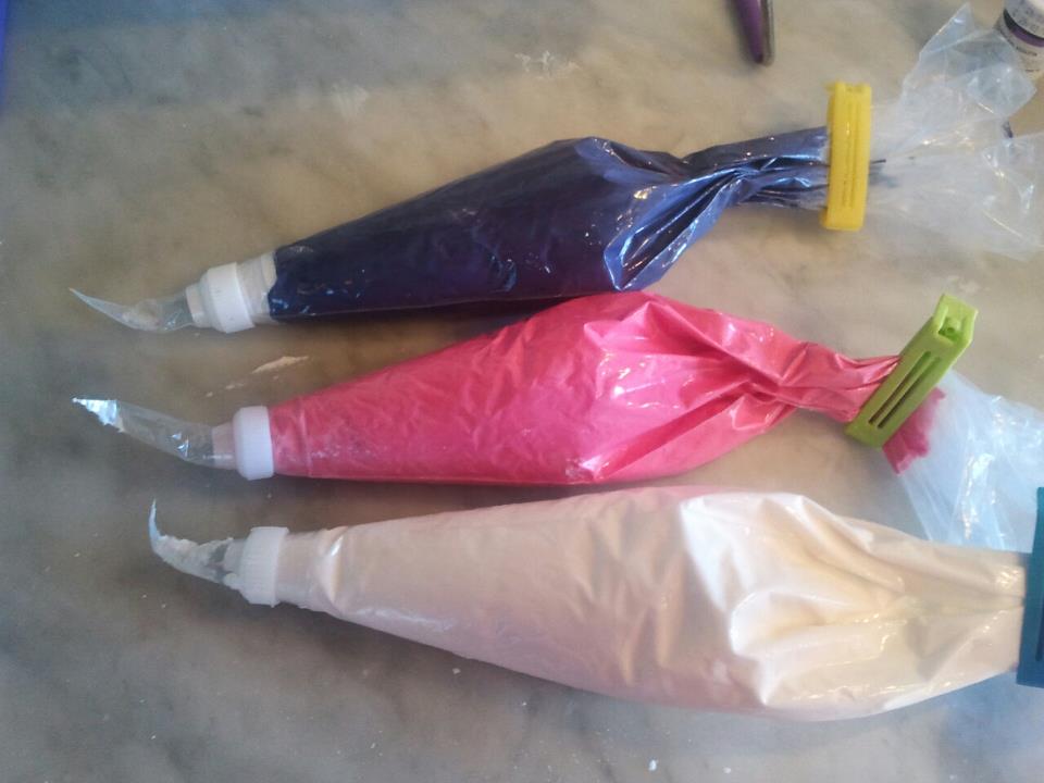glasa para decorar galletas, pero solamente de la de borde (no hace falta de la de relleno), también de uno o más colores, y algunos cortadores de galletas.