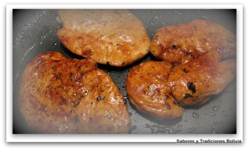 - Fritar la cebolla con el aceite de urucú y el ajo e incorporar la gallina deshilachada. Aumentar un poco del caldo de la gallina en cantidad necesaria.