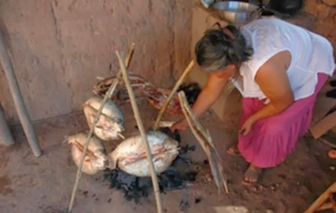 Se enciende una fogata y luego que han ardido los leños se extienden las brasas y alrededor se clavan los palos mordazas que aprisionanlos pescados, en sentido oblicuo para que reciban el calor de las brasas y el pescado se cueza uniforme.