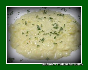 - Al agua donde hirvió el charque anadir el arroz , dejar cocer a fuego moderado hasta que este bien al dente.