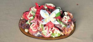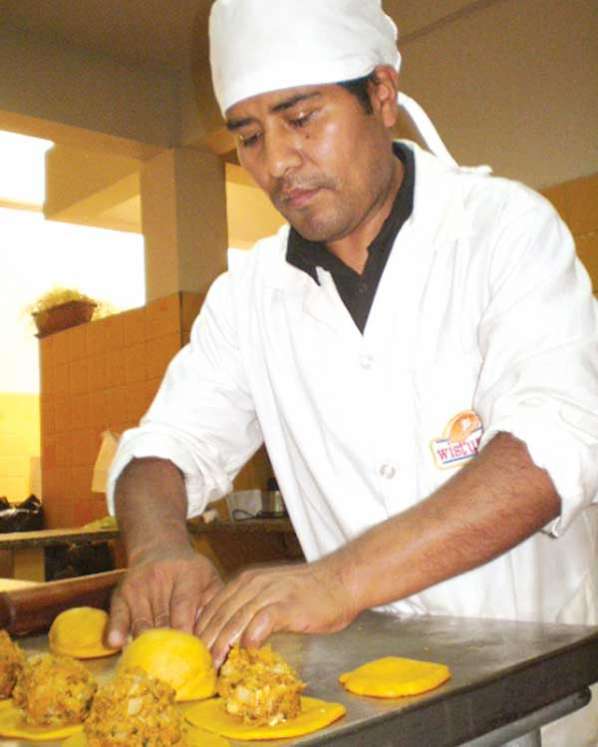 la persona fallecida. A partir de la parte media central y por los costados se pueden colocar los platillos de masitas y comida a ofrecer a los difuntos, y a cada lado se sirve un vaso de chicha morada, chicha kulli, el aji de alverjas, fruta seca, bizcochuelos, una taza de café y un vaso de agua.