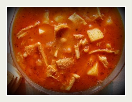 Hemos encontrado una especial olla de barro que también se coloca en la parte superior de la pachamanca, con caldo de gallina, aderezado con tomate, cebolla, hierbas y ají.