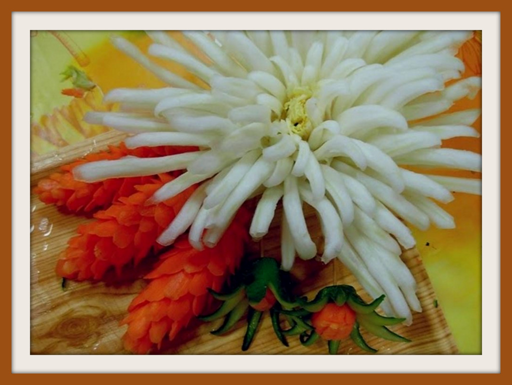 Garnish, Mukimono, Tallado. Dalia de Cebolla