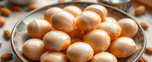 Pele las cascaritas de las almendras, muélala, añada leche, essencia de almendras o vainilla y azúcar molida, mezcle bien hasta formar una masa suave y de facil manejo. Si fuera necesario agregue azúcar molida, viendo la consistencia de la masa. Forme bolitas pequeñas y distribuya en pirotines. Si gusta las puedes bañar con fondant.