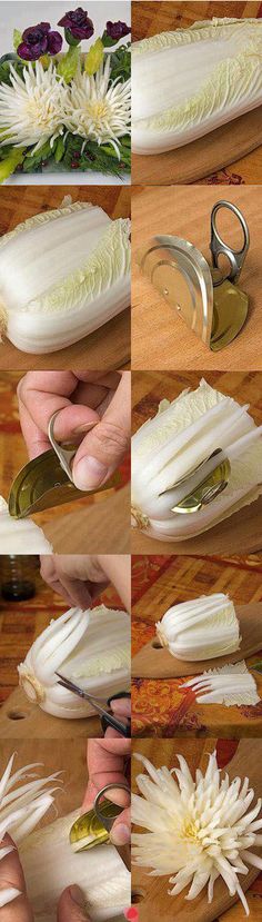 1 SepEl esculpido (o tallado) de la verdura y de la fruta es una técnica oriental a la que se denomina Mukimono. Este arte de esculpir vegetales recuerda al del ikebana (el famoso arte floral japonés) ya que las verduras adoptan formas de flores. El esculpido se realiza con cuchillos muy delgados y de gran precisión para conseguir una gran finura. . El arte en el manejo de estos cuchillos es a lo que se denomina kaishiki. Además de representar flores, también se tallan hojas, paisajes, animales e incluso mensajes en ideogramas. La manera de cortar varía según la textura de la verdura o fruta, y algunas verduras se presentan al corte en tiras circulares, otras a dibujos geométricos (círculos, medias lunas, rosetones, etc) y otras a cintas. El objetivo de esta técnica no es solamente destacar las formas y los colores, sino también poner de relieve los aromas y los sabores.