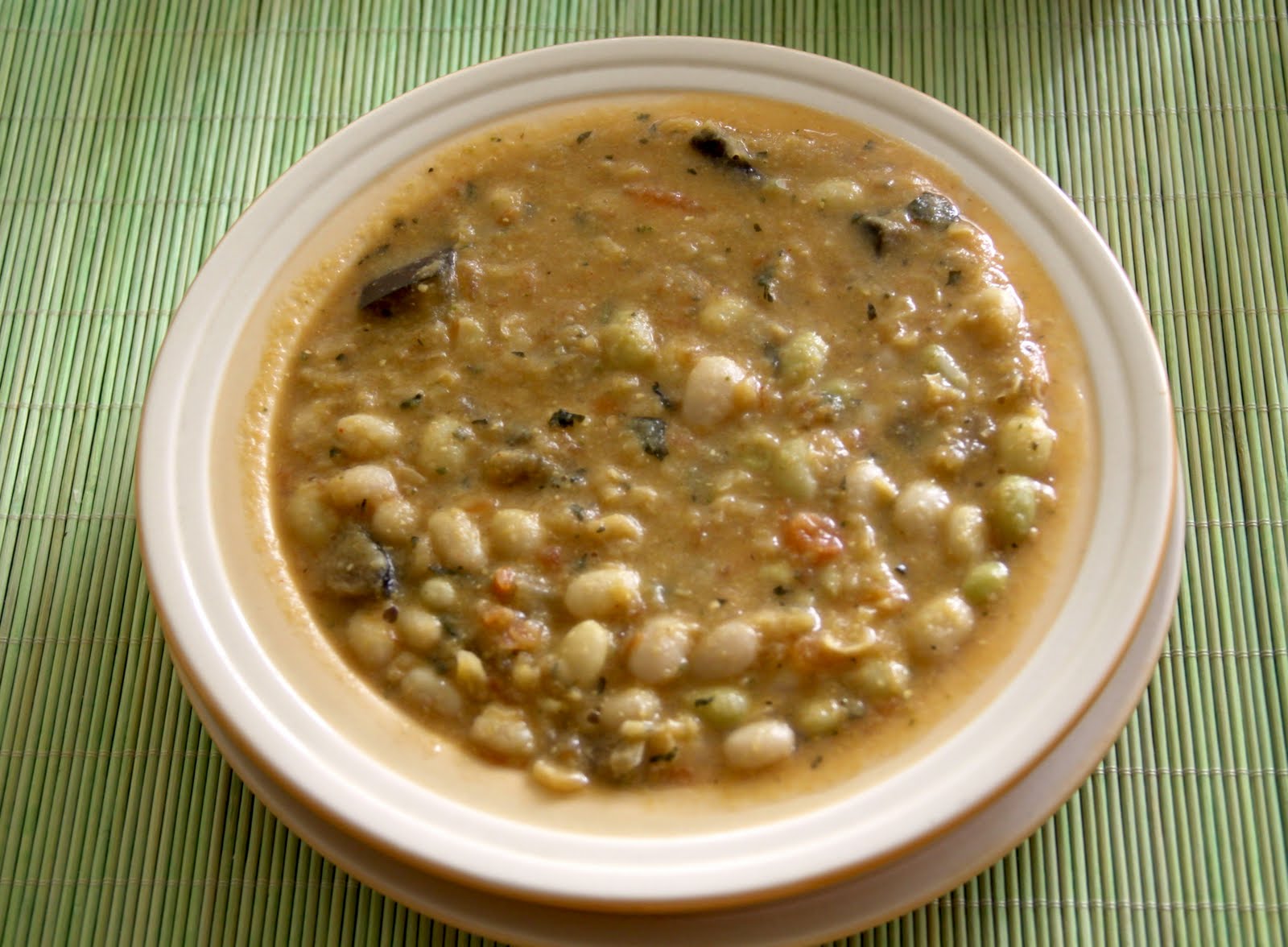 Llevar a cocer hasta que estén blandos. Retirar y reservar el agua donde se hirvió. (Verificar que no esté muy salado). Moler el charque en caliente. Reservar. Hervir el maíz hasta que esté blando y reservar en la olla. Hacer un sofrito con la cebolla, tomate, ajo y los condimentos en el aceite con urucú. Freír el charque y agregar a la olla donde está el maíz. Agregar el sofrito y los huesos de agujita. Añadir el caldo de cocción del charque que fue reservado. Continuar cociendo por unos minutos más. Rectificar el sabor y apagar cuando esté todo bien integrado. Servir y decorar con la cebollita verde bien picadita