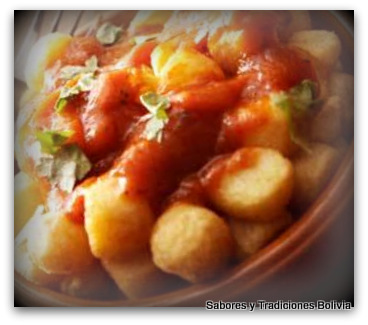 -Los principales ingredientes son: carne de res en charque, papas sipancachi, harina de maíz willkapuru, ají colorado, cebolla, ajo. Todo esto sazonado con orégano, sal, comino, pimienta, chachacoma (hierba con sabor parecido al pino), pupusa y alguno que otro condimento más, que no te lo puedo decir, porque es el secreto de la casa…