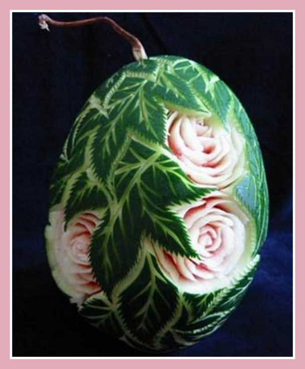 Garnish, Mukimono, Tallado. Rosas de Sandia