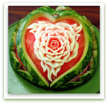 Garnish, Mukimono, Tallado. Cuna de Sandia