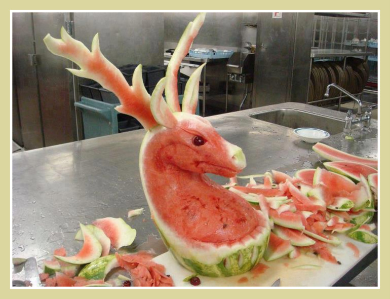 Garnish, Mukimono, Tallado. Venado de Sandia