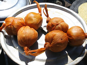 Hágase cocer en manteca de chancho, cebolla verde muy bien picada, espolvoréesele un poquito de cominos pulverizados, y mézclese al choclo, batiéndolo muy bien, para que todos estos ingredientes se incorporen. Envuélvase en las hojas, o panca del choclo, dos cucharadas para cada panca. Se las dobla y ata con un hilo de pita, y se las pone al horno, o bien a cocer en una olla con poca agua, y asentadas, en pila, sobre cañitas cruzadas sobre la superficie del agua que hierve, teniendo cuidado de tapar la boca de la olla para conservar el vapor necesario a la cocción.