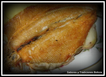 - Escamar muy bien la trucha cuidando no se destroce, lavar cuidadosamente y luego frotar con el limón exprimiendo su jugo de ambos lados, adobar con pimienta blanca, sal y dejar reposar por una hora o más.
